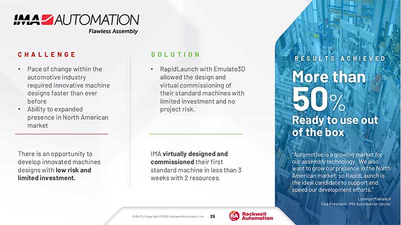 RapidLaunch is built using world class digital design tools allowing users to quickly configure machines based on their physical layouts. Simply add the value-added sequence logic and the machine can be virtually commissioned without the need for additional control code.
